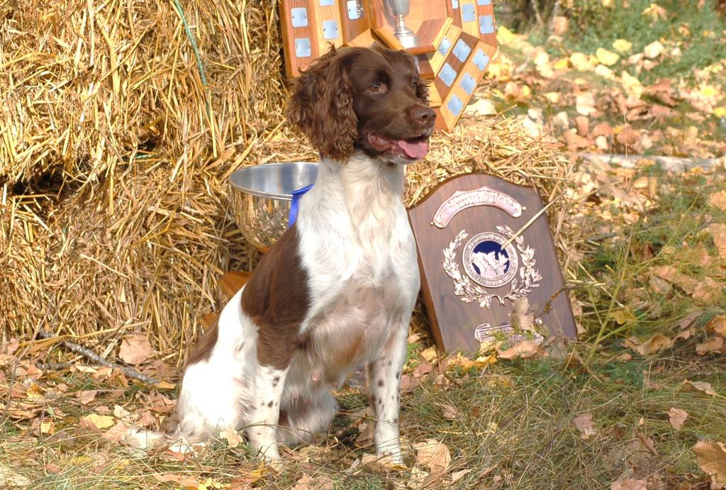 NFTCh, FTCh Lady Caramel won the 2011 Canadian National Spaniel Field Trial Championship competing against 77 of the top open dogs in North America. She is the foundation of our breeding program and her pups exhibit her excellent temperment and natural hunting ability. She was as much at home on her favourite chair as she was tracking a rooster pheasant through the rasberry thickets.